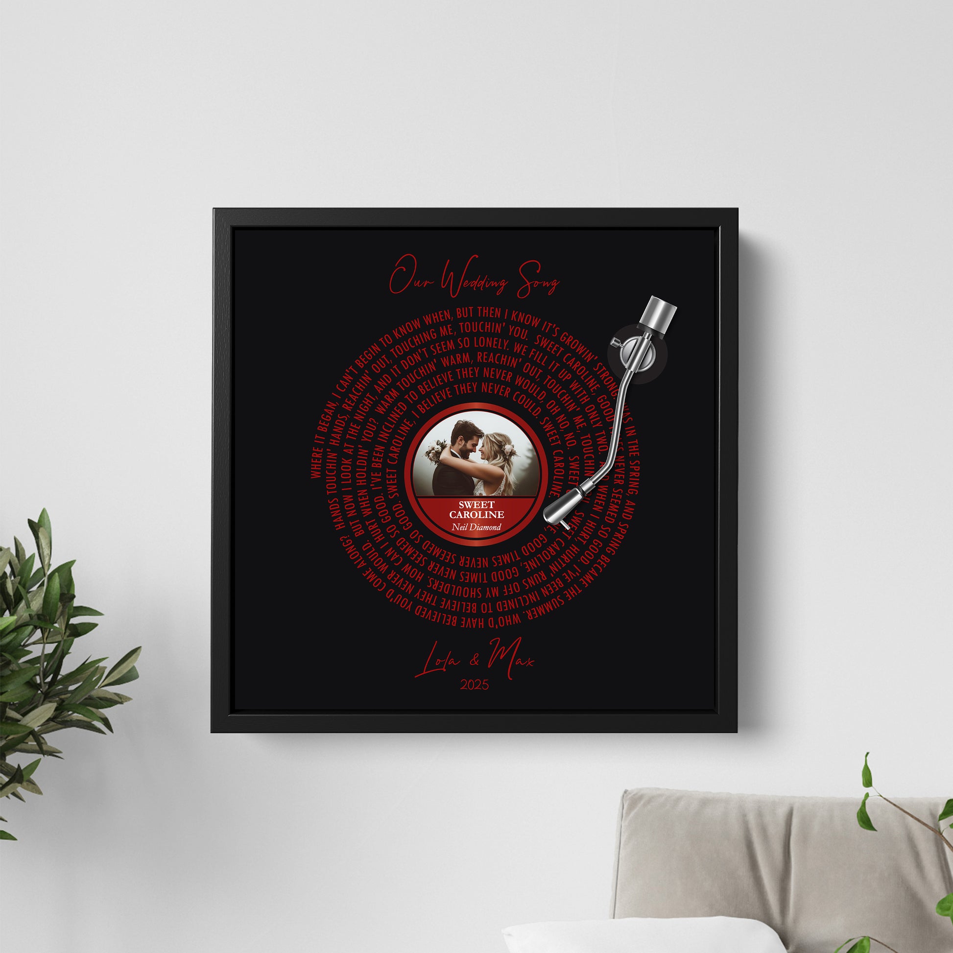 WEDDING ANNIVERSARY GIFT WITH SONG LYRICS CUSTOM PHOTO FRAMED CANVAS PRINT