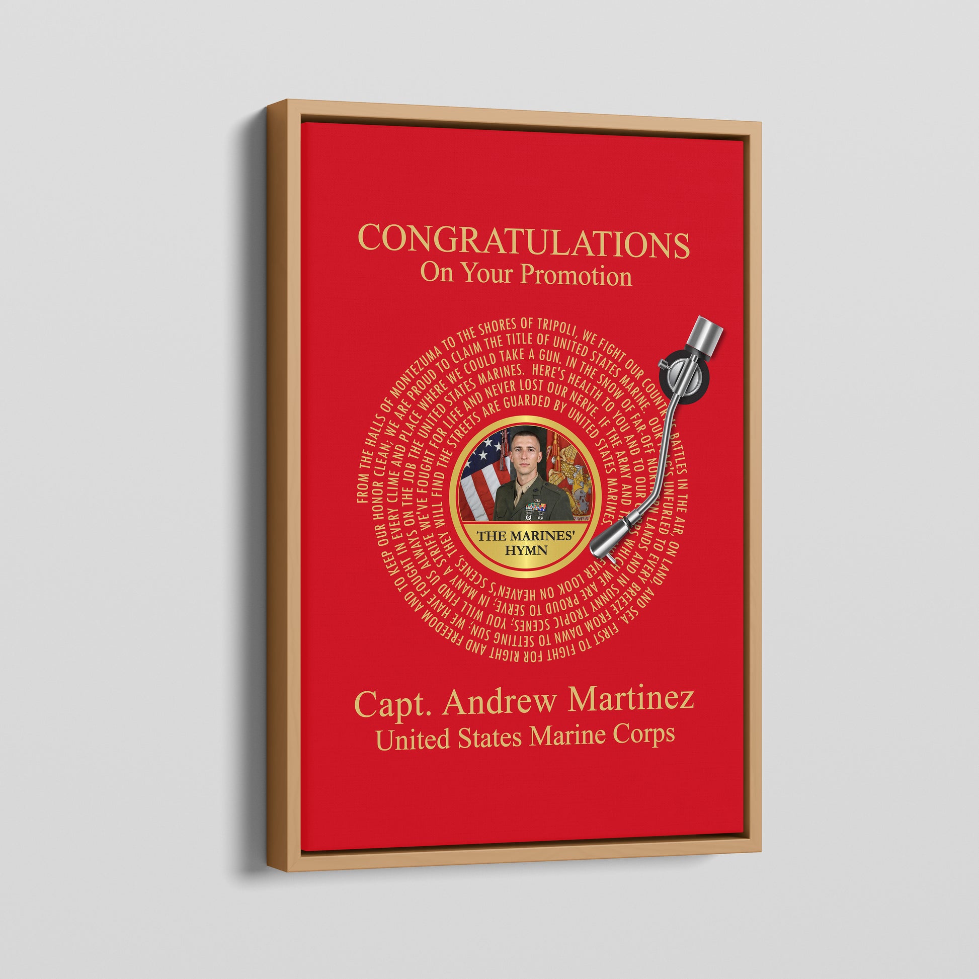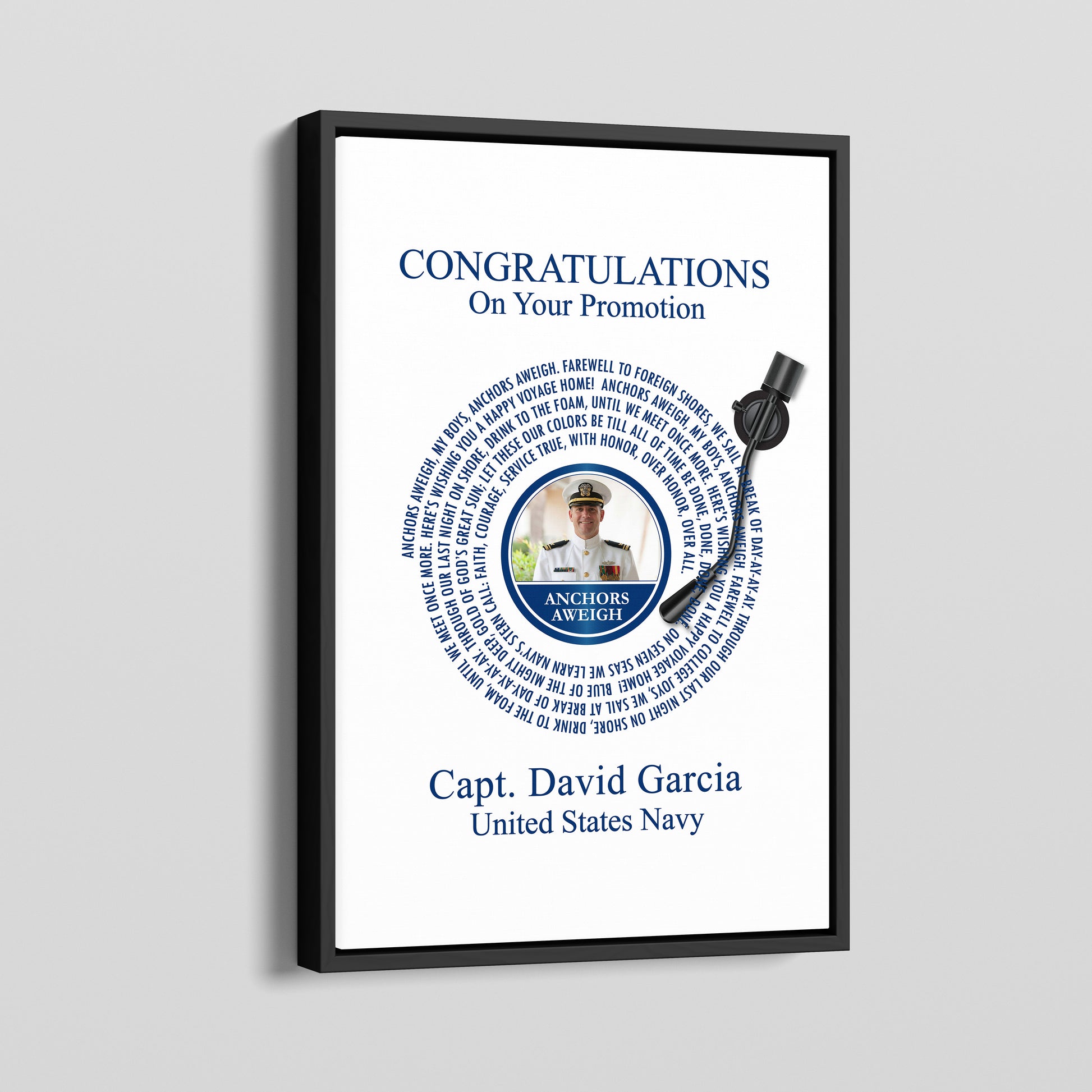 Celebrate a well-deserved military promotion with a personalized keepsake that honors dedication, sacrifice, and achievement. This custom military promotion print features your service member’s photo, rank, and official branch anthem, creating a timeless tribute they’ll be proud to display.