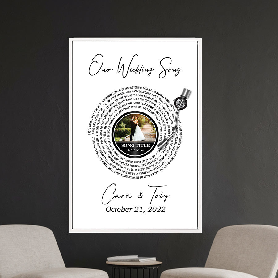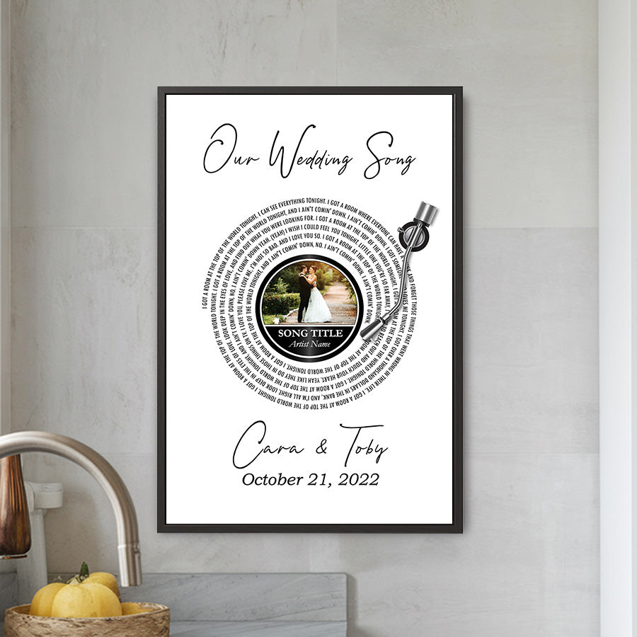 Celebrate your love story with a truly meaningful keepsake. Our Custom Framed Anniversary & Wedding Canvas transforms your favorite photo and meaningful song lyrics into elegant wall art that honors your journey together.